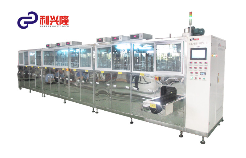 多槽式超声波清洗机清洗工件就是通过超声波发出的频率让清洗液产生空化效应,从而加速溶解和剥离被清洗工件上灰尘、油脂等污垢,所以选择合适的超声波频率也能提高清洗的效果。 例如,使用水或水清洗剂时由空化作用引起的物理清洗力需要使用低频超声波;对小间隙、狭缝、深孔的零件清洗高频超声波效果更好。